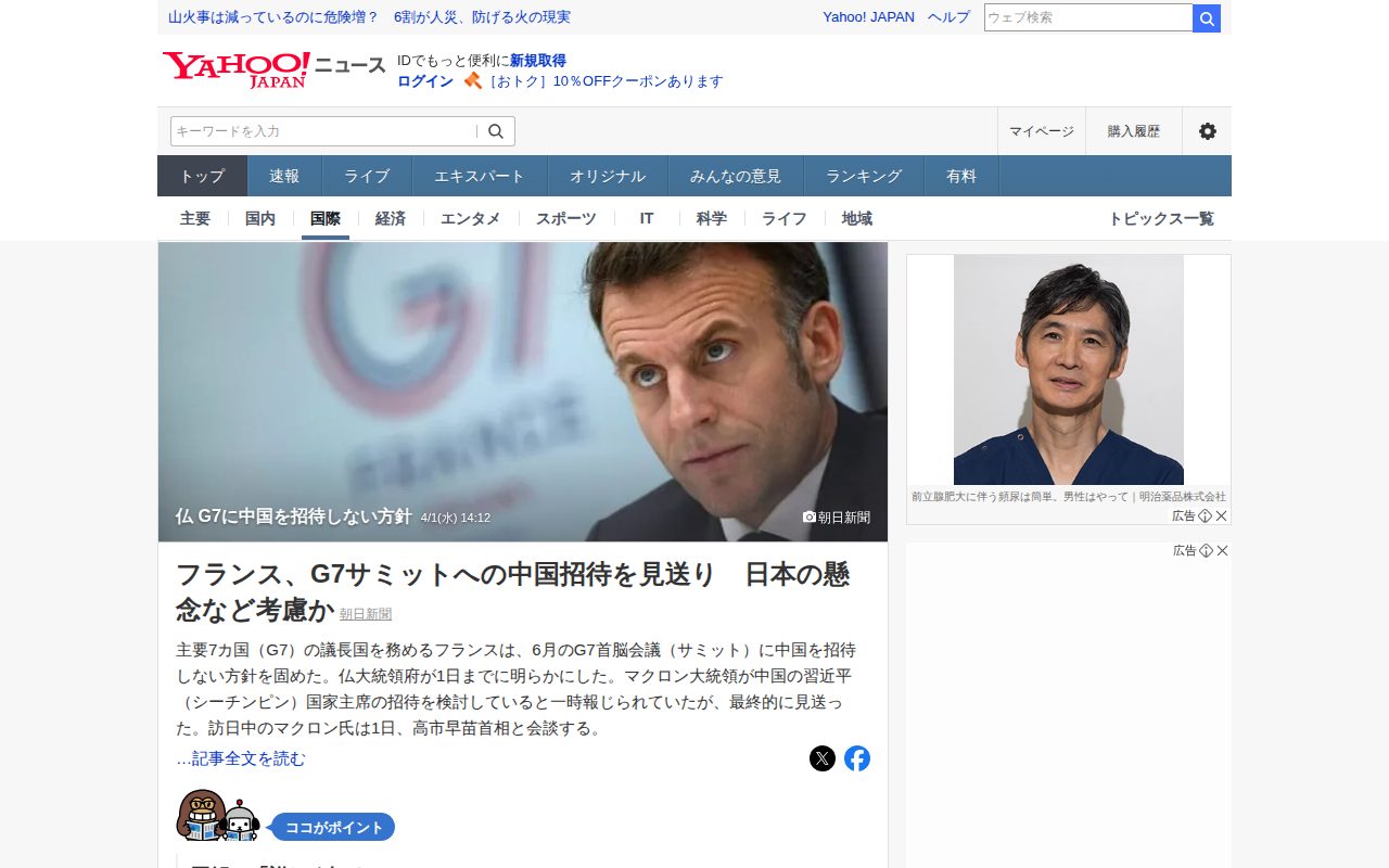 仏 G7に中国を招待しない方針 - Yahoo!ニュース - Saved screenshot