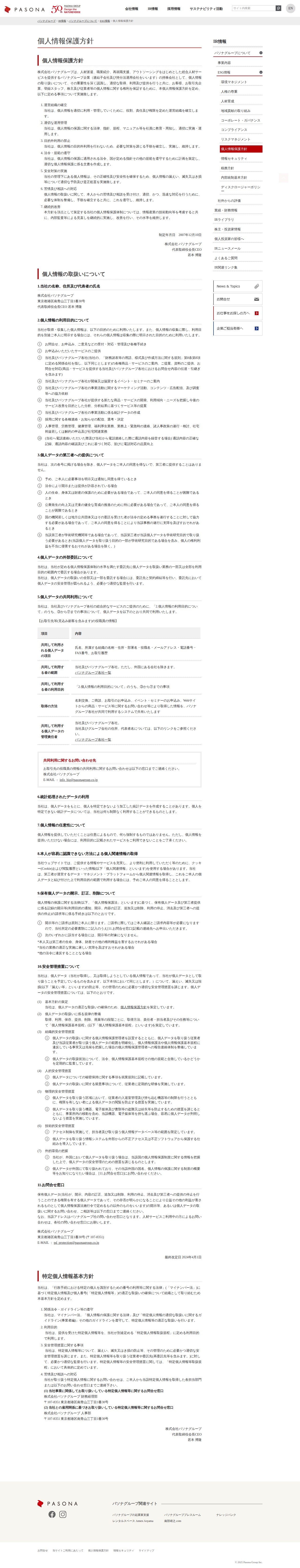 個人情報保護方針 | パソナグループ
