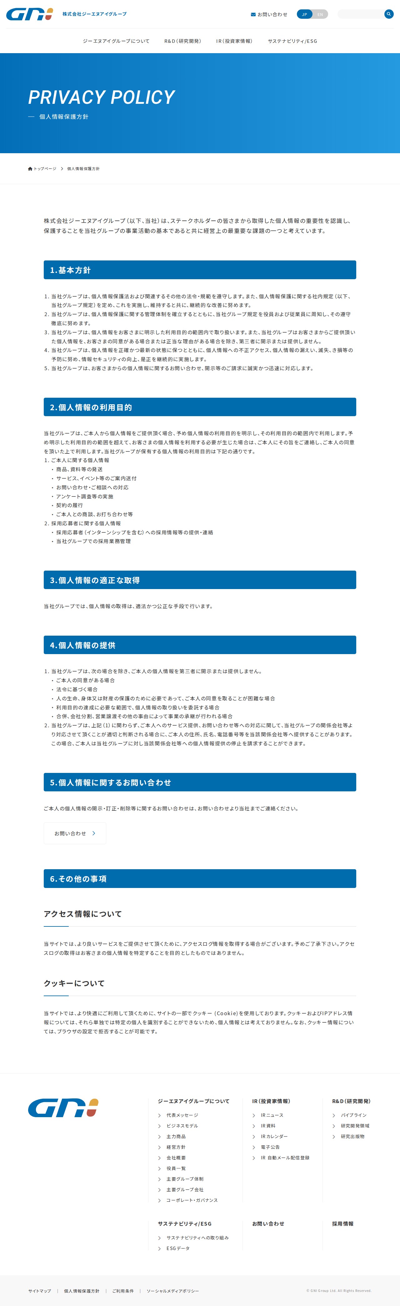 個人情報保護方針 - 株式会社ジーエヌアイグループ - Saved screenshot