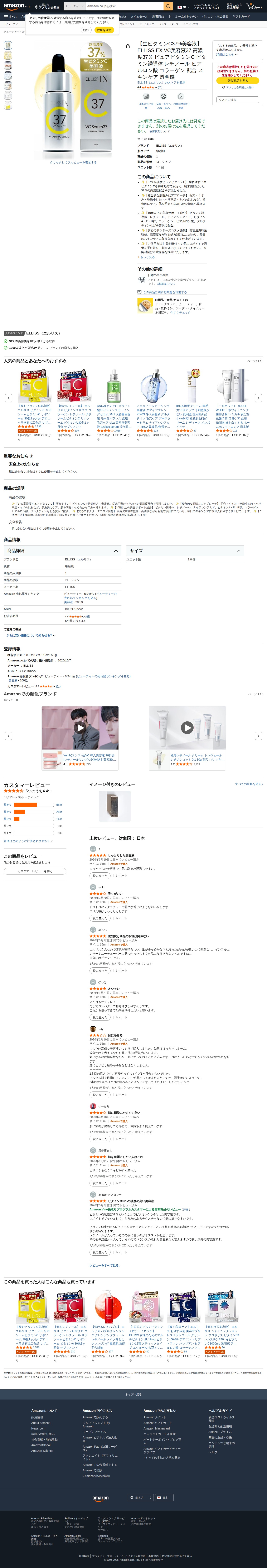Amazon.co.jp: 【生ビタミンC37%美容液】 ELLISS EX VC美容液37 高濃度37% ピュアビタミンC ビタミン誘導体 レチノール ヒアルロン酸 コラーゲン 配合 スキンケア 透明感 : ビューティー - Saved screenshot