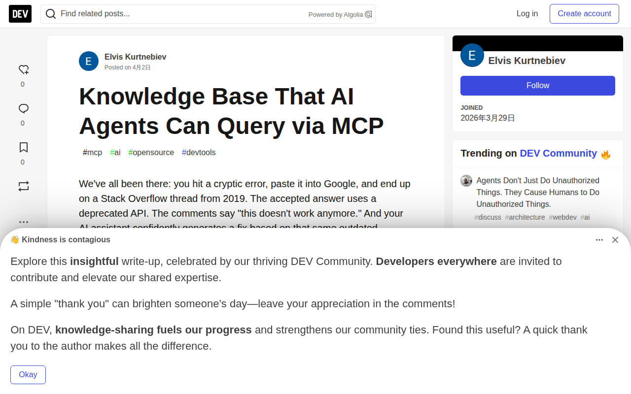Knowledge Base That AI Agents Can Query via MCP - DEV Community