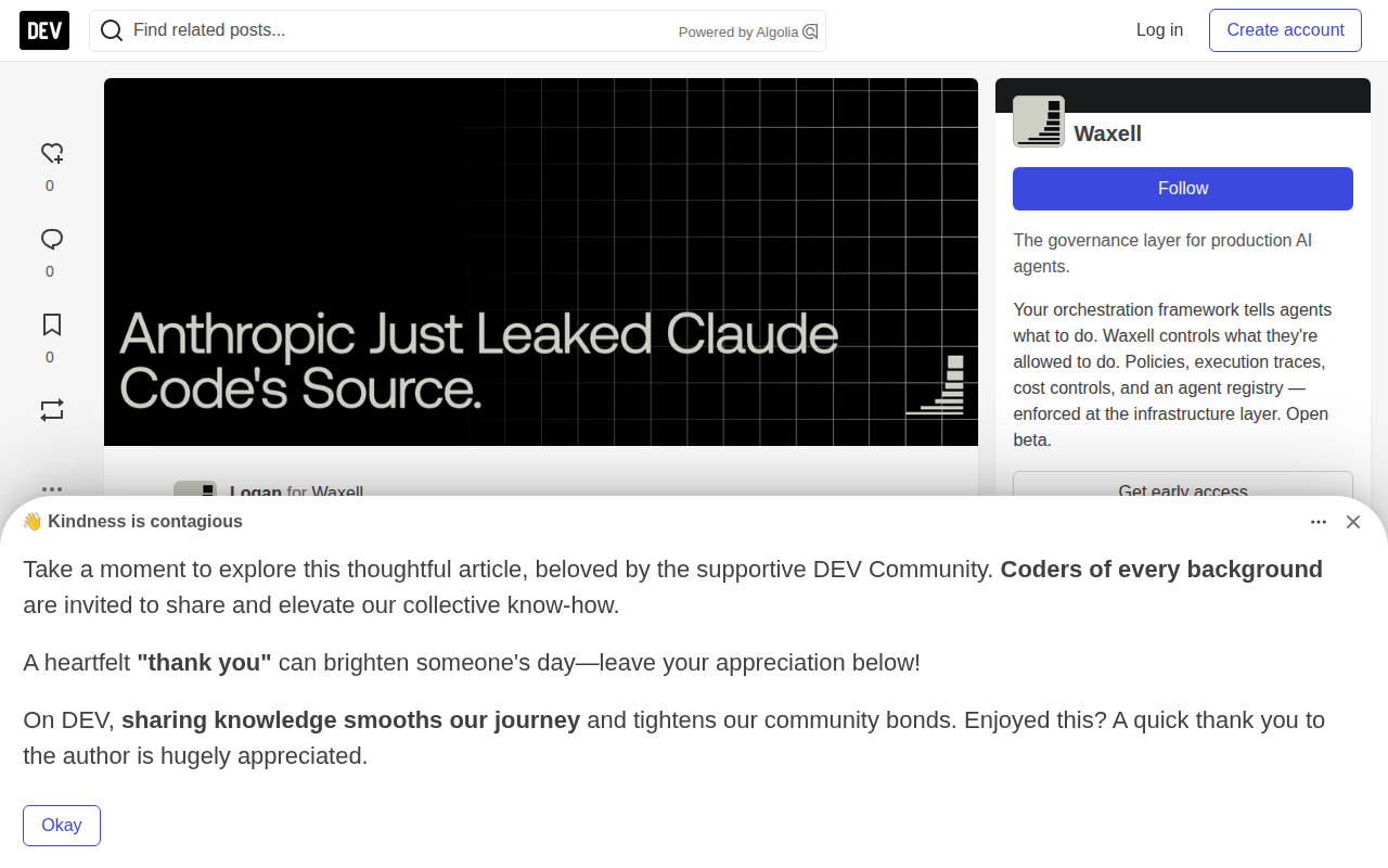 /waxell/anthropic-just-leaked-claude-codes-source-heres-what-that-means-for-every-ai-agent-you-run-f7k