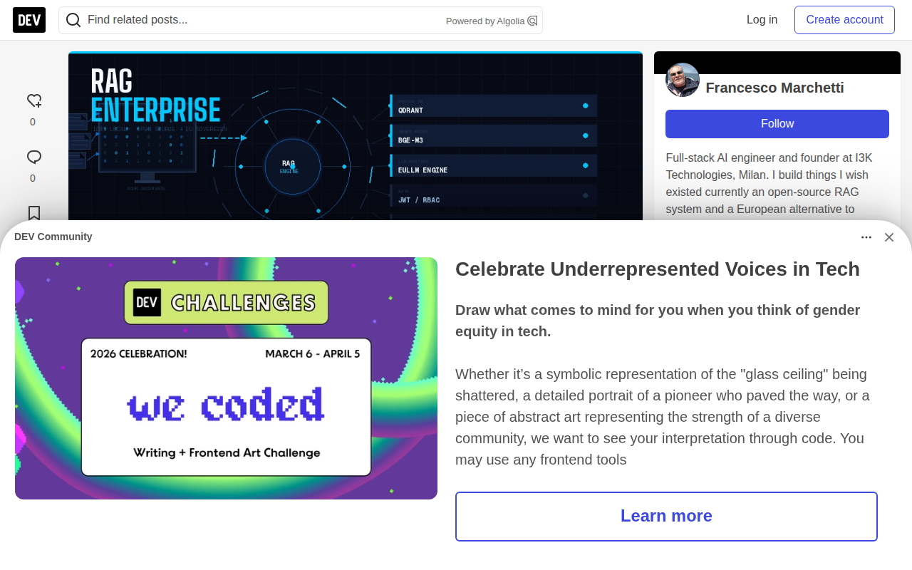 This page describes RAG Enterprise, a self-hosted RAG system built by Francesco Marchetti to overcome limitati...