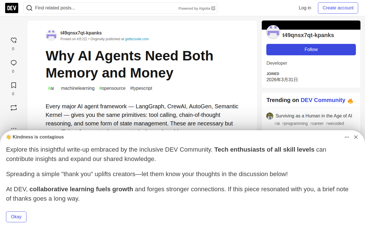 Why AI Agents Need Both Memory and Money - DEV Community