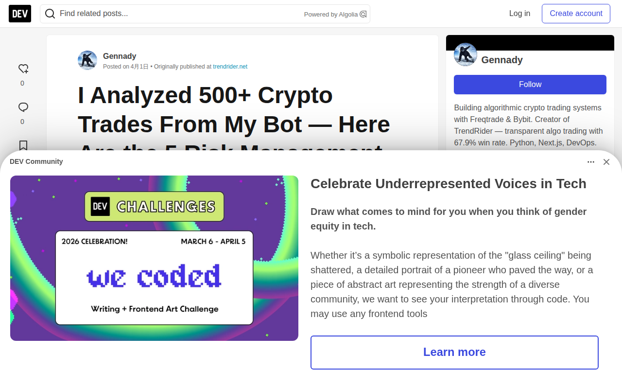 I Analyzed 500+ Crypto Trades From My Bot — Here Are the 5 Risk Management Rules That Actually Work - DEV Community