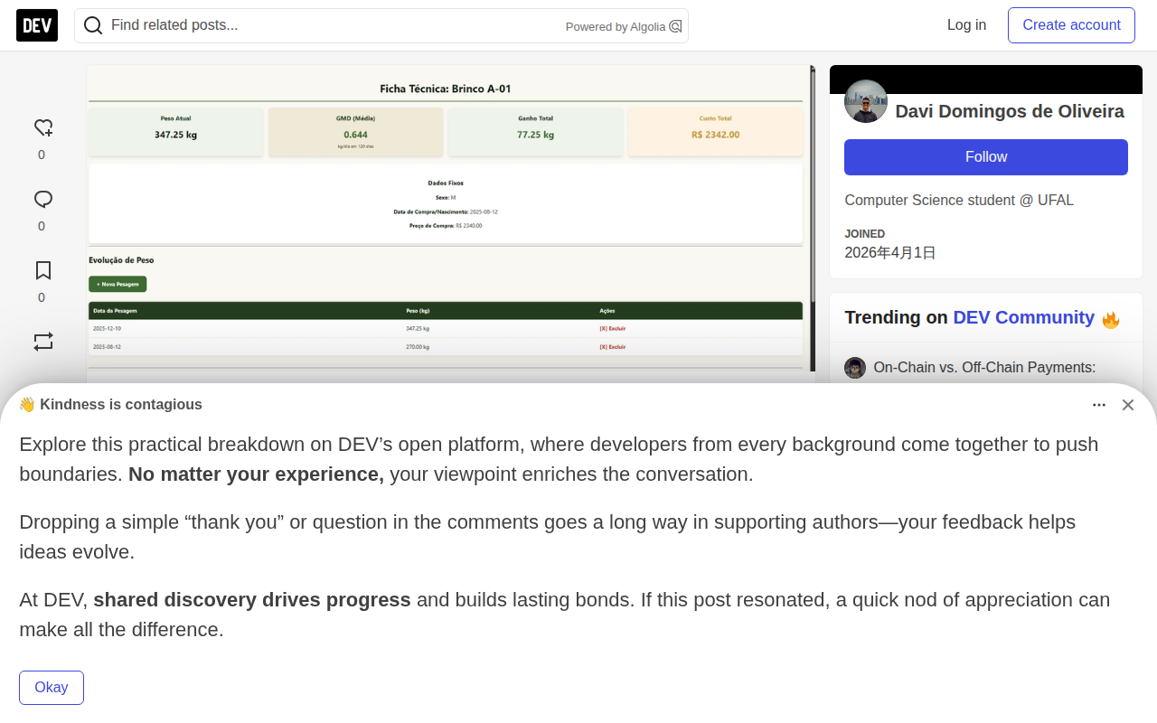 Modelagem de Dados no Agro: Unindo fluxo de caixa e Ganho Médio Diário (GMD) no mesmo Banco de Dados - DEV Community