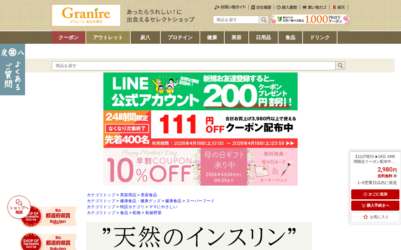 【楽天市場】【111円割引★18日 24時間限定クーポン配布中】一丸商店 腸活KIKUIMOチップス 50g 3袋セット ノンフライ オイルフリー 乾燥野菜 腸活 血糖値上昇を抑える 糖尿病対策 イヌリン 亜鉛 腸内フローラ 善玉菌 免疫力アップ 菊芋 ダイエット食品:グラニーレ 楽天市場店