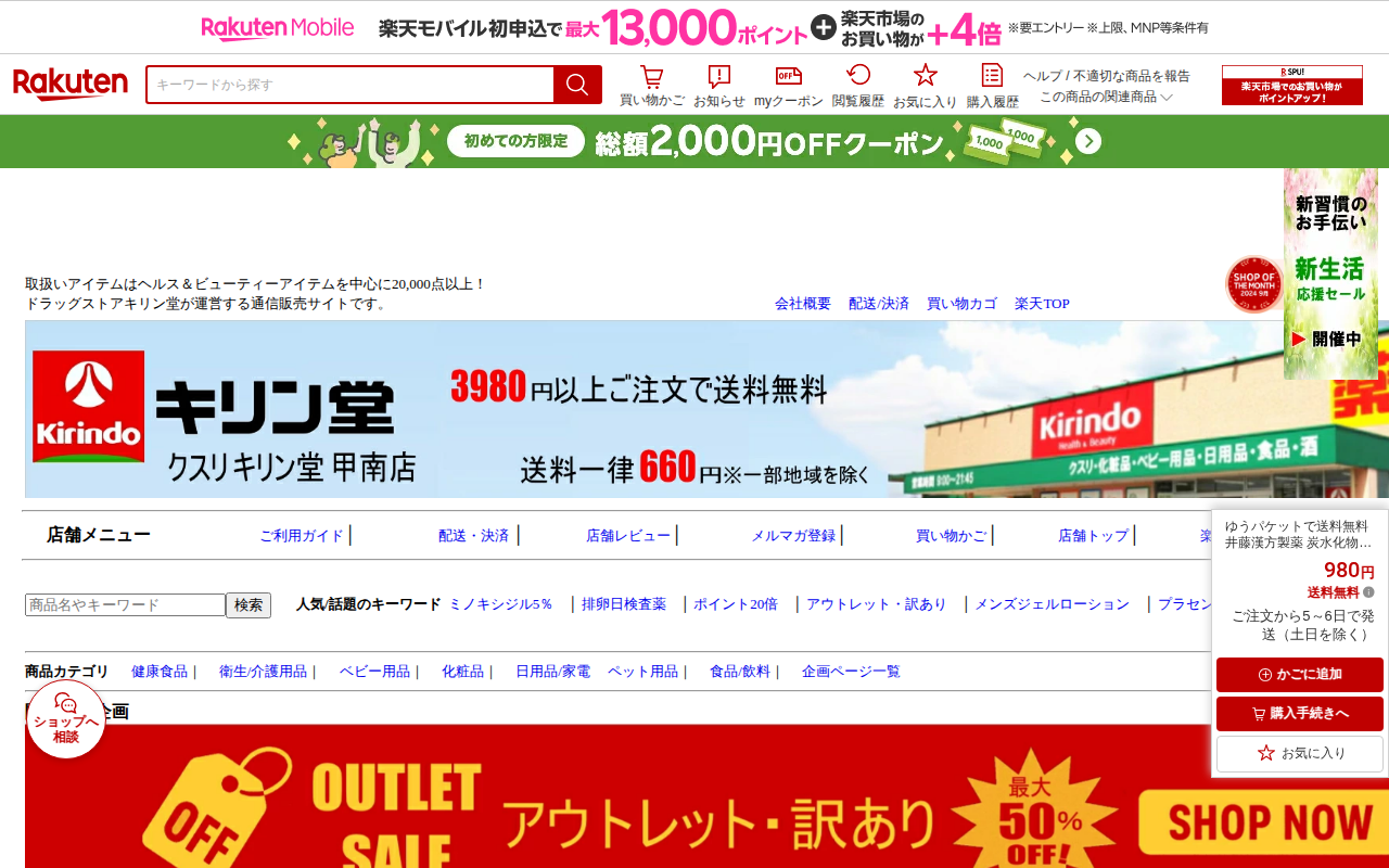 This page is a product listing on Rakuten Market's Kirin-do Online Shop for Itoh Kampo Pharmaceutical's "Carbo...