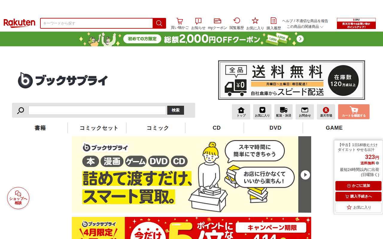This page is a Rakuten Marketplace listing for a used book titled "1日1杯飲むだけダイエット やせる出汁" sold by Book Supply. T...