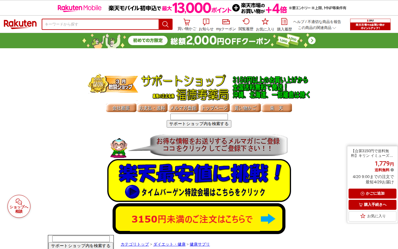 【楽天市場】【合算3150円で送料無料】キリン イミューズ 免疫ケア・ヘルシア内臓脂肪ダウン 42粒 7日分:サポートショップ