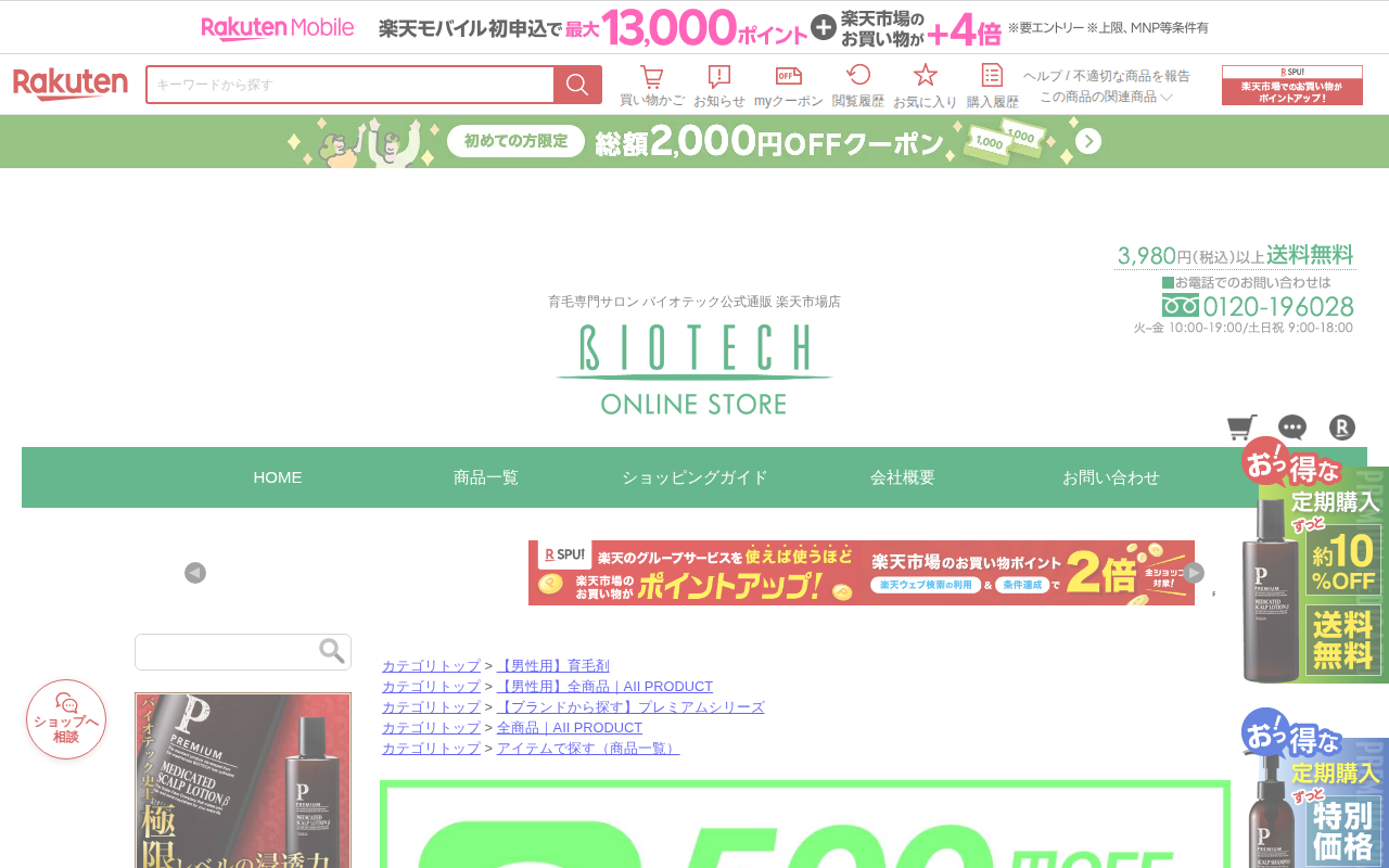 【楽天市場】【限定10%オフ】\育毛サロン開発/ 育毛剤 男性用 バイオテック プレミアム メディケイテッド スカルプローションβ 300ml 約1ヶ月分(1日2回使用) 医薬部外品 薬用育毛剤 日本製 育毛 養毛 薄毛 抜け毛 頭皮 AGA スカルプケア 養毛剤 薬用:バイオテック 楽天市場店