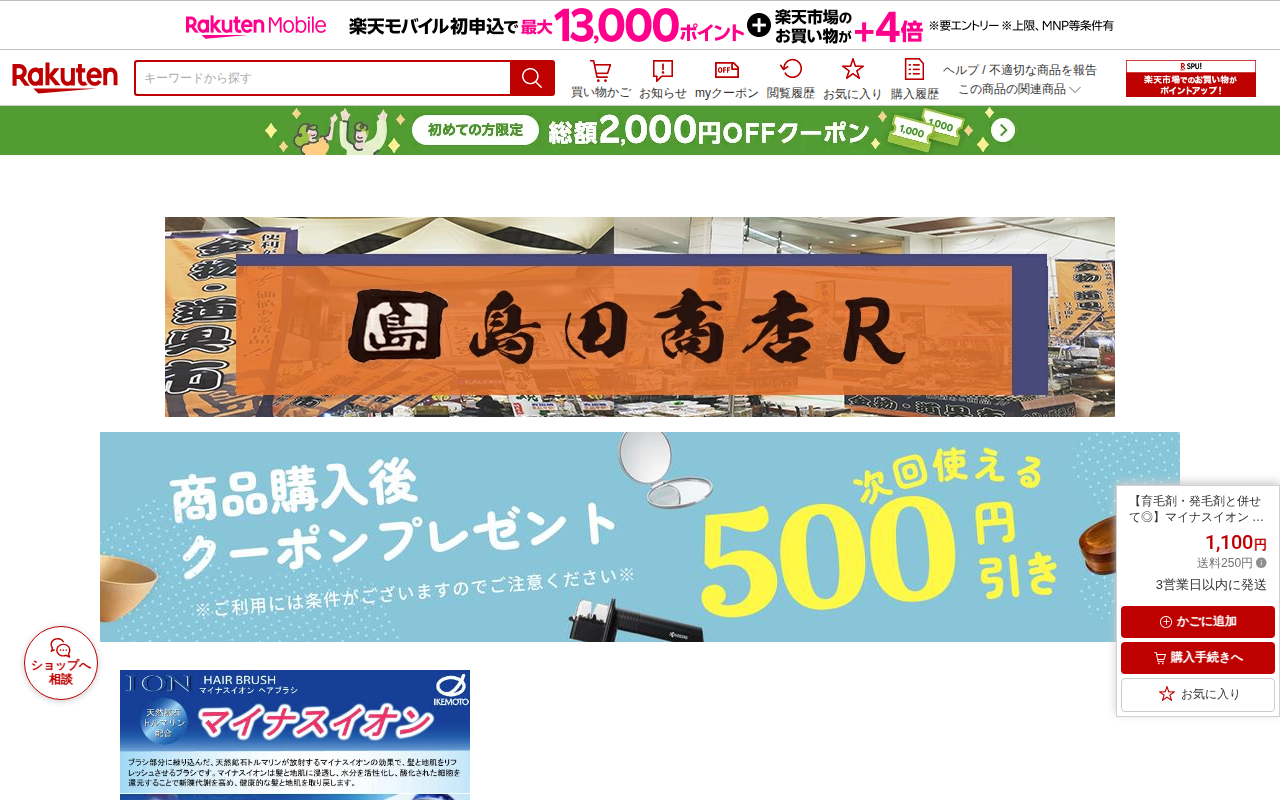This page displays a Rakuten market listing for a negative ion scalp styling brush by Ikemoto Brush Industry, ...