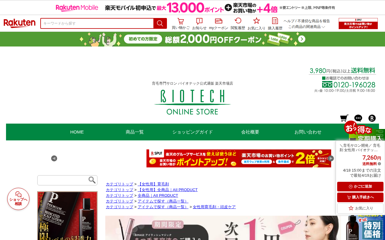 This page features a men's hair growth tonic called 'Biotech Premium Medicated Scalp Lotion β' developed by a ...