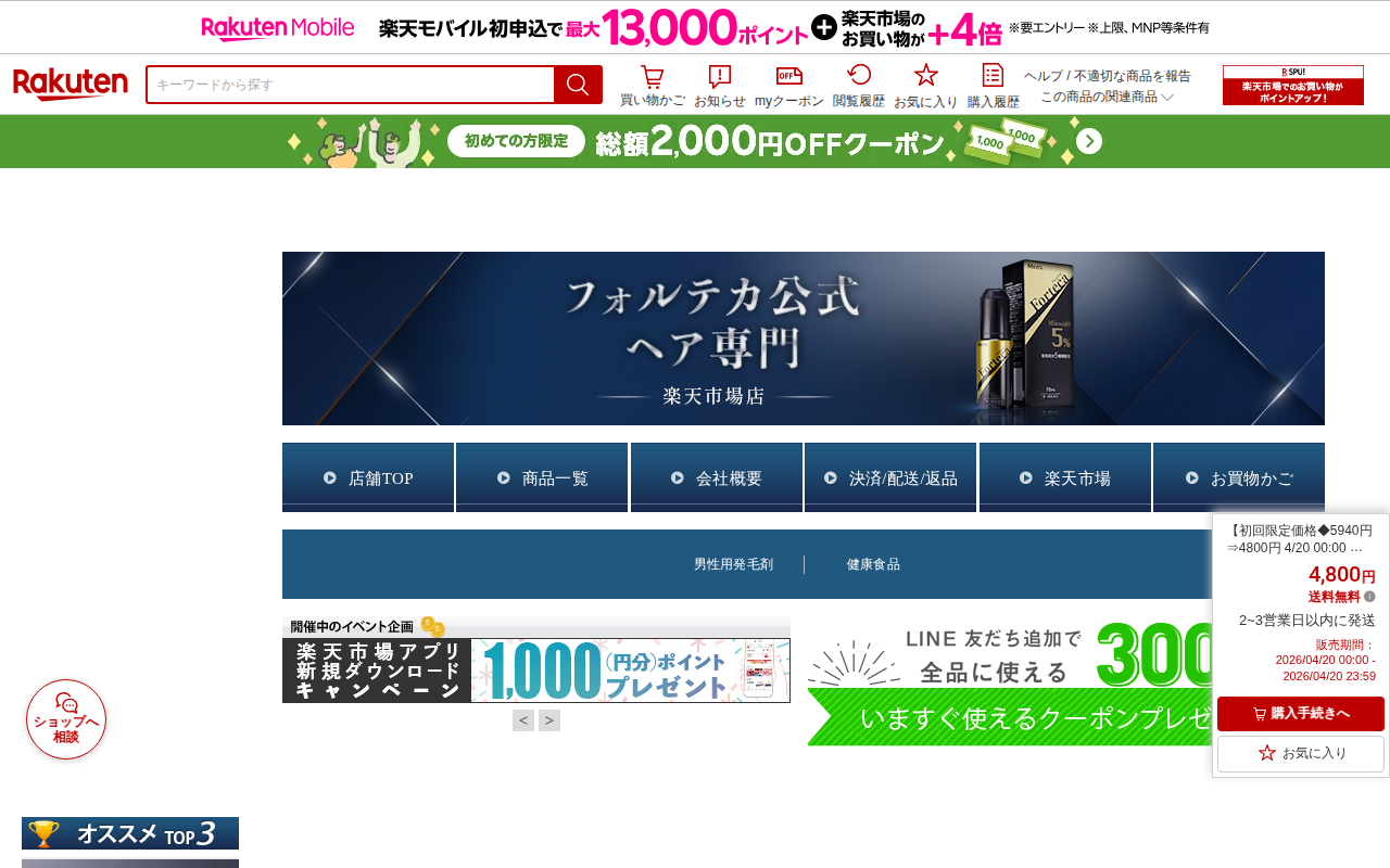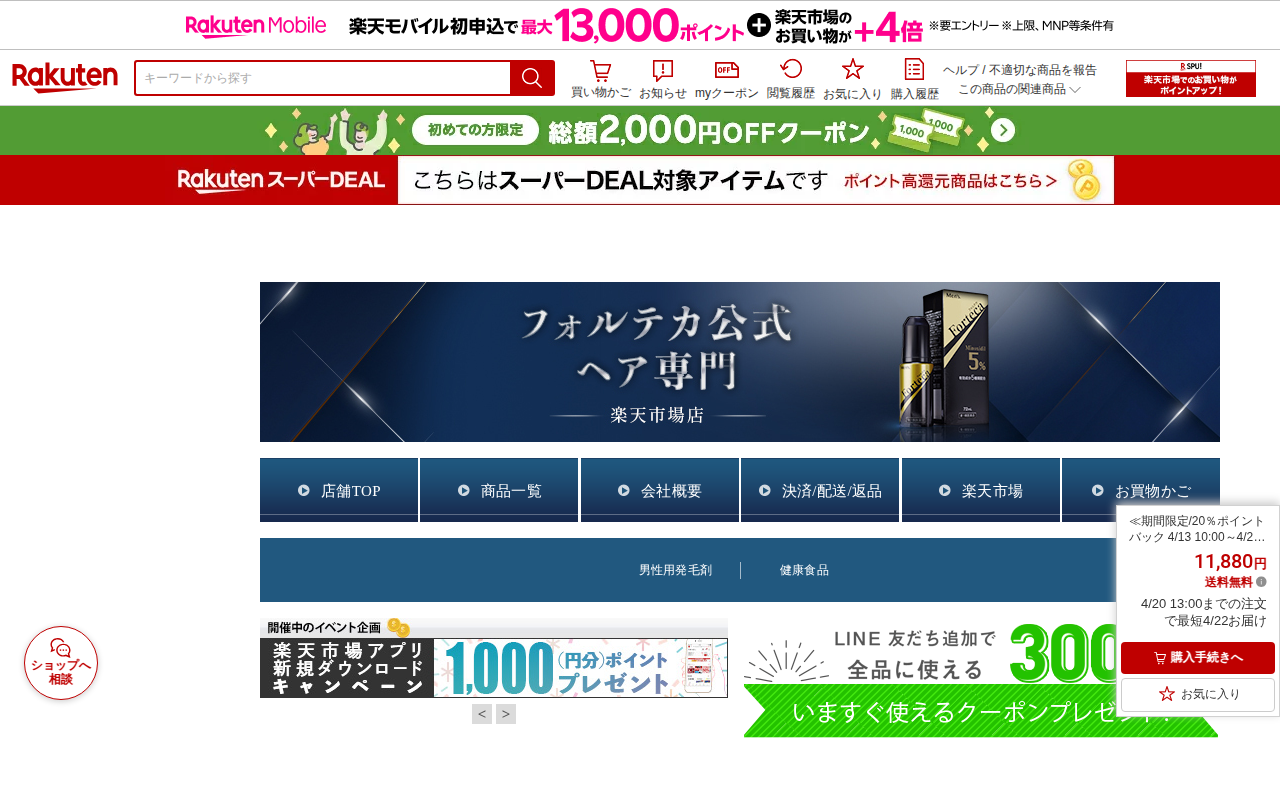 【楽天市場】【初回限定価格◆5940円⇒4800円 4/20 00:00 ~ 23:59まで】フォルテカ (72mL) ハイクラス 男性用 発毛剤 発毛 育毛剤 ミノキシジル 国内最大濃度 5% + 5種の有効成分 発毛薬 養毛剤 薄毛 育毛 おすすめ 抜け毛 ボリュームアップ 薄毛対策 脱毛 AGA ミノキ【第1類医薬品】:フォルテカ公式ヘア専門楽天市場店