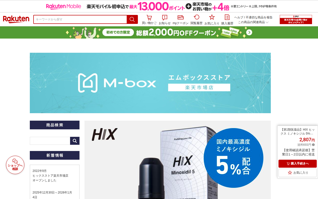 This page presents Hix Minoxidil 5% 60mL, a first-class pharmaceutical product sold on Rakuten Market. Priced ...