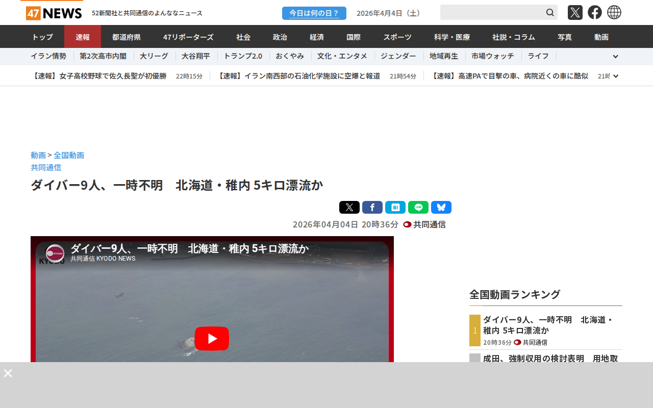 ダイバー9人、一時不明 北海道・稚内、5キロ漂流か|47NEWS(よんななニュース)