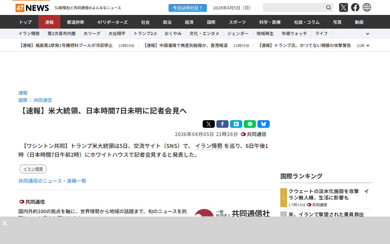 【速報】米大統領、日本時間7日未明に記者会見へ|47NEWS(よんななニュース)