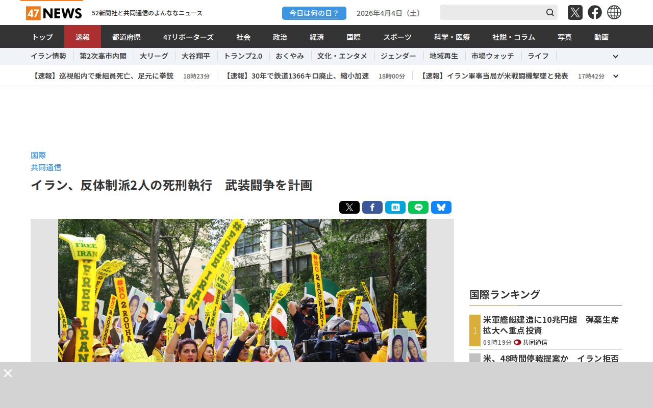 イラン、反体制派2人の死刑執行 武装闘争を計画|47NEWS(よんななニュース)