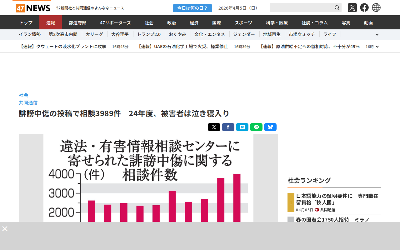 誹謗中傷の投稿で相談3989件 24年度、被害者は泣き寝入り|47NEWS(よんななニュース)