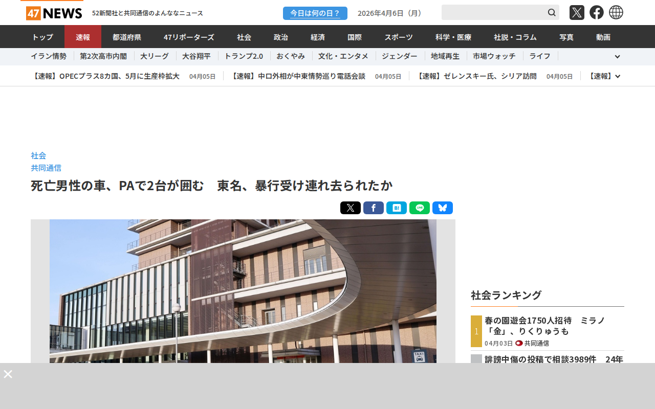 死亡男性の車、PAで2台が囲む 東名、暴行受け連れ去られたか|47NEWS(よんななニュース)