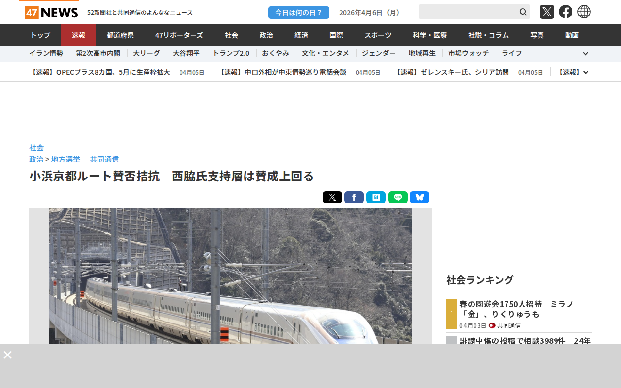 小浜京都ルート賛否拮抗 西脇氏支持層は賛成上回る|47NEWS(よんななニュース)