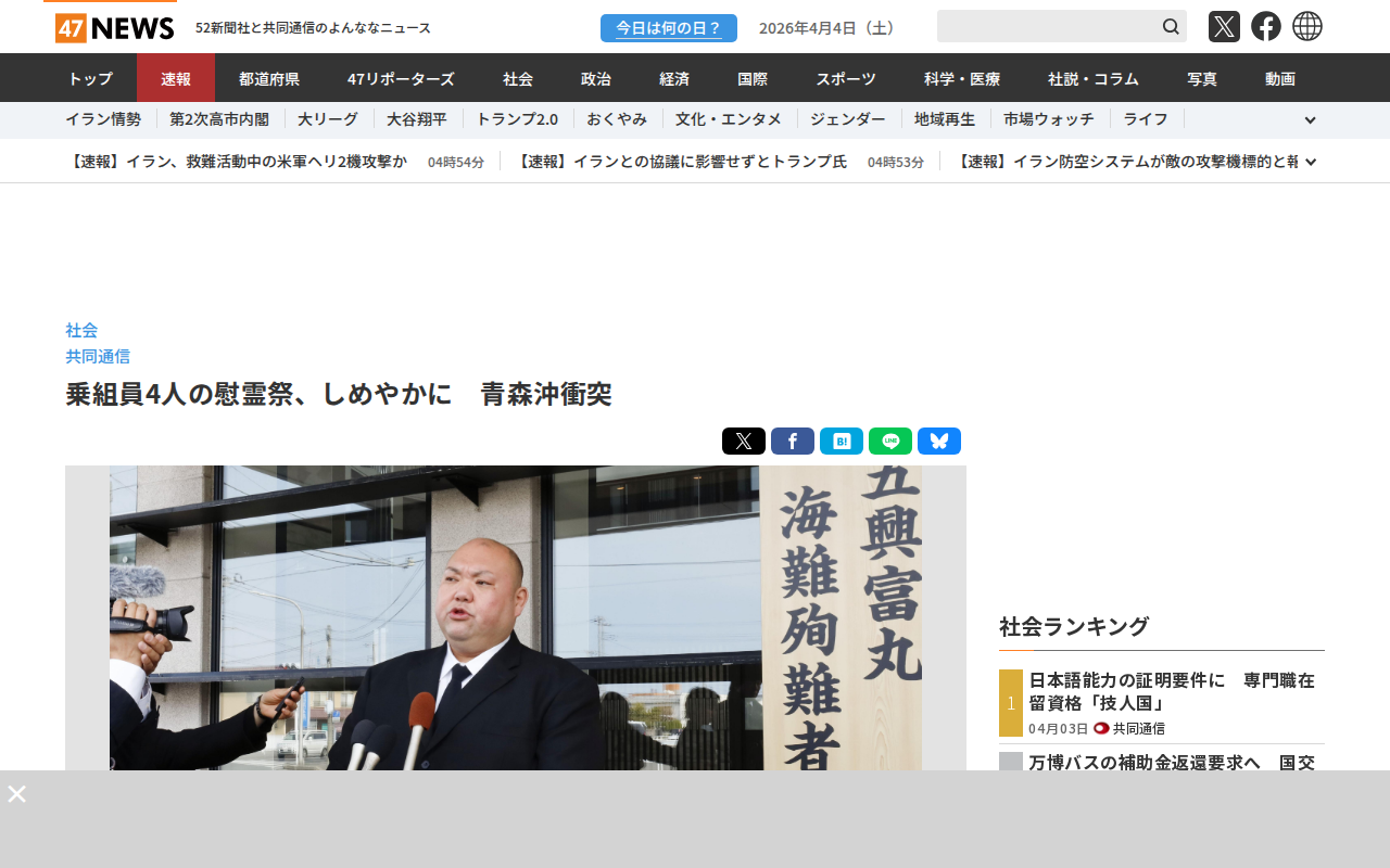 乗組員4人の慰霊祭、しめやかに 青森沖衝突|47NEWS(よんななニュース)