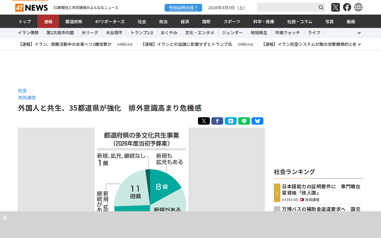 外国人と共生、35都道県が強化 排外意識高まり危機感|47NEWS(よんななニュース)
