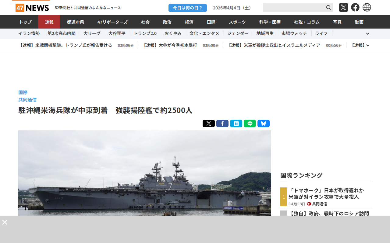 駐沖縄米海兵隊が中東到着 強襲揚陸艦で約2500人|47NEWS(よんななニュース)