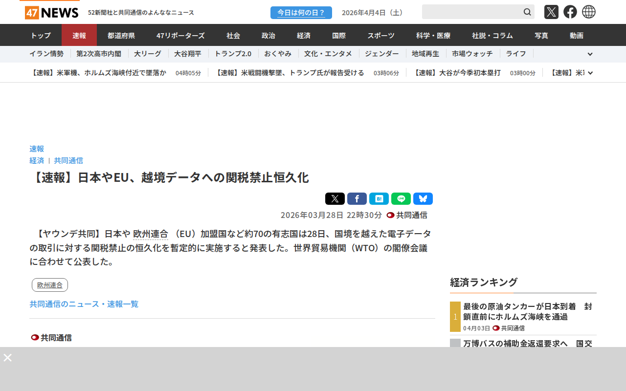 【速報】日本やEU、越境データへの関税禁止恒久化|47NEWS(よんななニュース)