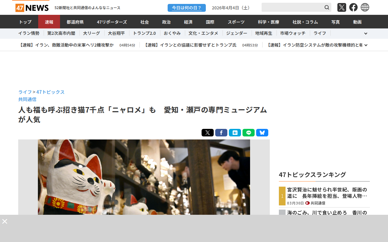 人も福も呼ぶ招き猫7千点「ニャロメ」も 愛知・瀬戸の専門ミュージアムが人気|47NEWS(よんななニュース)