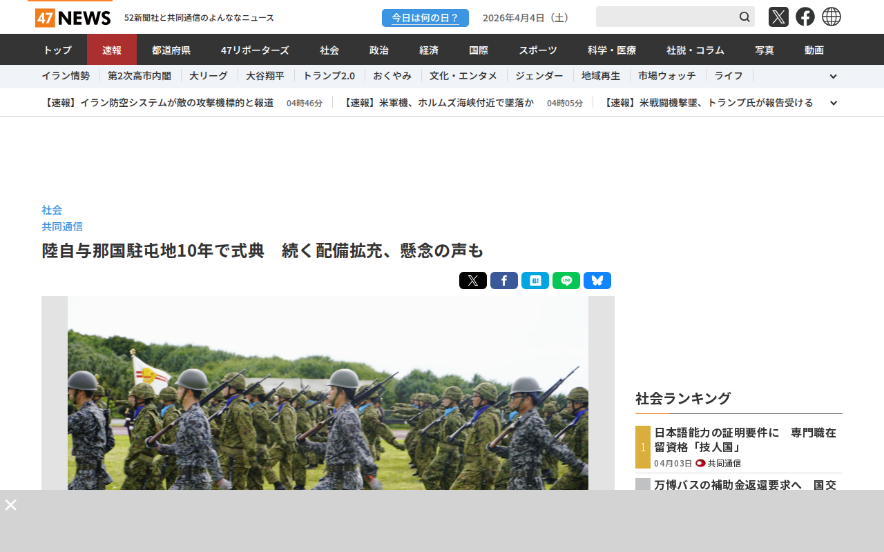 陸自与那国駐屯地10年で式典 続く配備拡充、懸念の声も|47NEWS(よんななニュース)