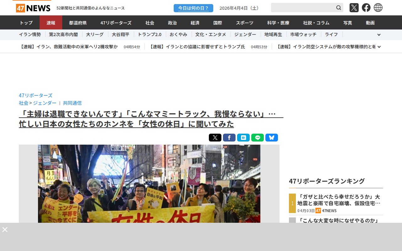 「主婦は退職できないんです」「こんなマミートラック、我慢ならない」… 忙しい日本の女性たちのホンネを「女性の休日」に聞いてみた|47NEWS(よんななニュース)