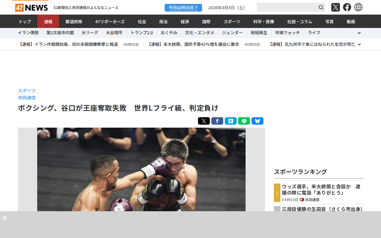 ボクシング、谷口が王座奪取失敗 世界Lフライ級、判定負け|47NEWS(よんななニュース)