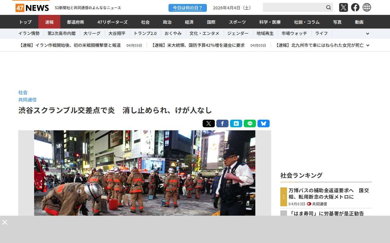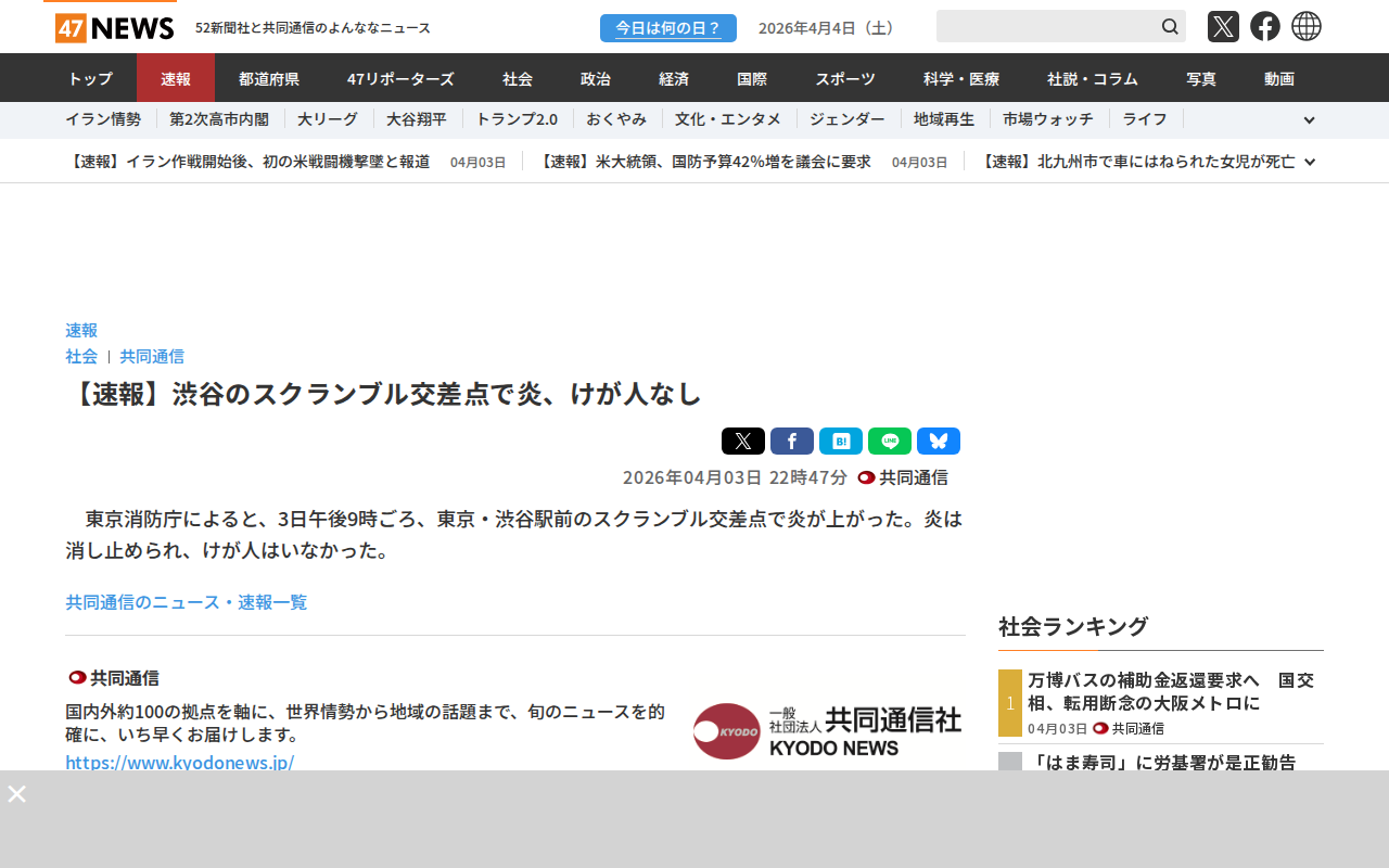 【速報】渋谷のスクランブル交差点で炎、けが人なし|47NEWS(よんななニュース)