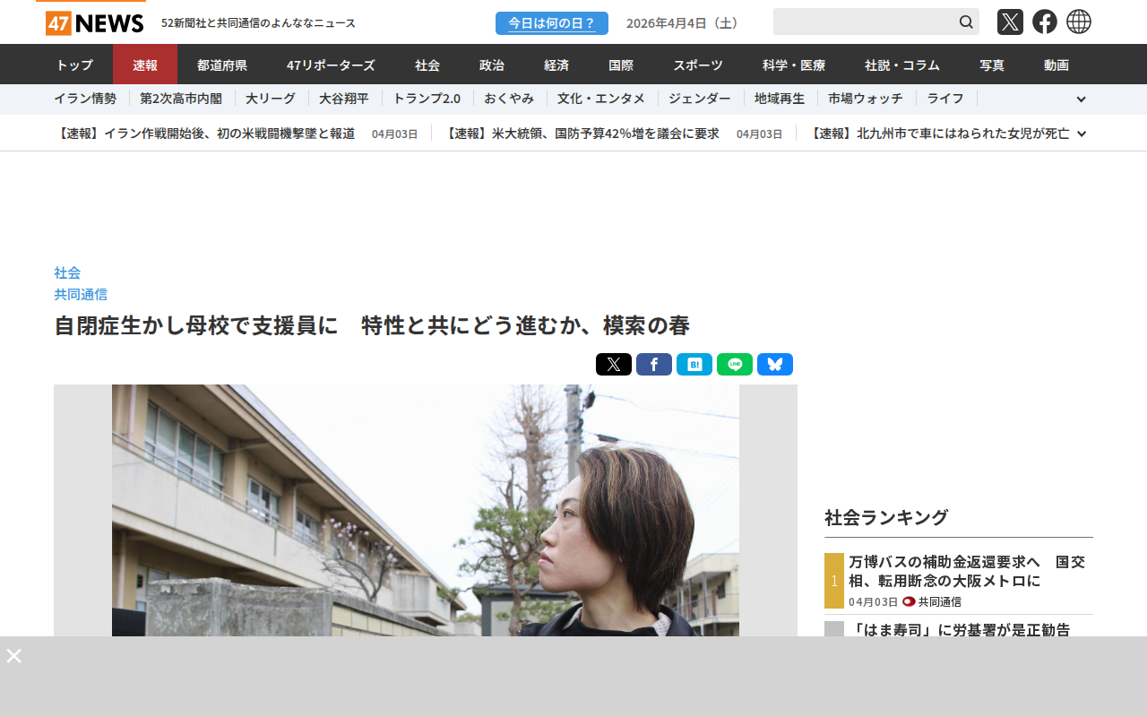 自閉症生かし母校で支援員に 特性と共にどう進むか、模索の春|47NEWS(よんななニュース)