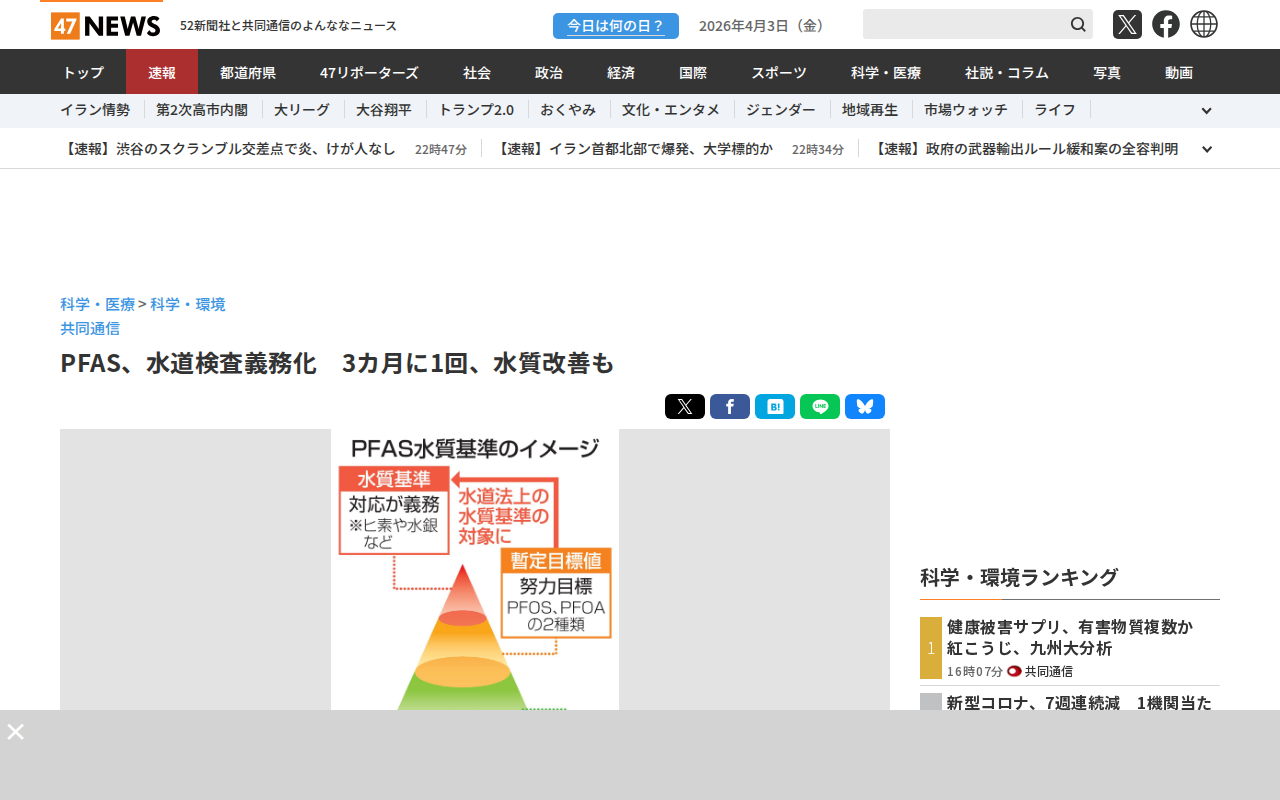 PFAS、水道検査義務化 3カ月に1回、水質改善も|47NEWS(よんななニュース)