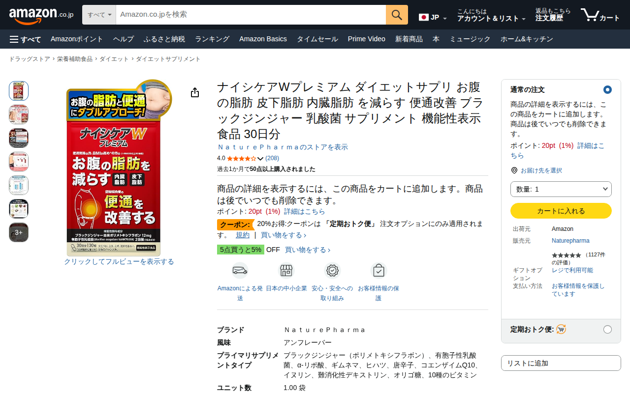 ナイシケアWプレミアム お腹の脂肪を減らす 機能性表示食品 サプリ
