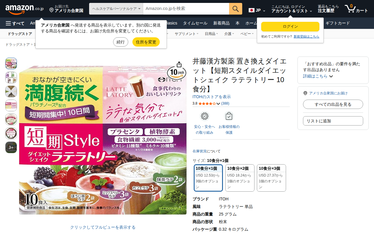 This page presents the 'Short-Term Style Diet Shake Latte' by Itoh Kampo Pharmaceutical, a meal replacement sh...