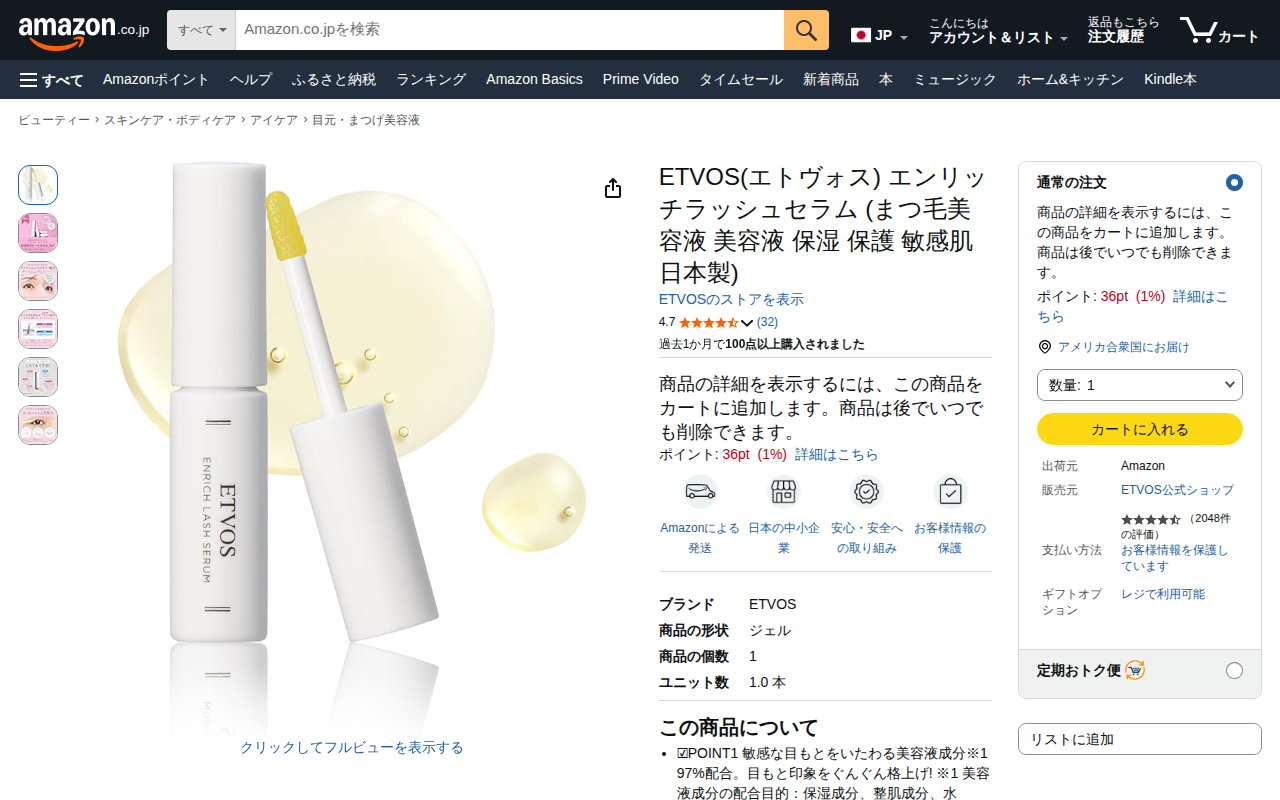 Amazon.co.jp: ETVOS(エトヴォス) エンリッチラッシュセラム (まつ毛美容液 美容液 保湿 保護 敏感肌 日本製) : ビューティー