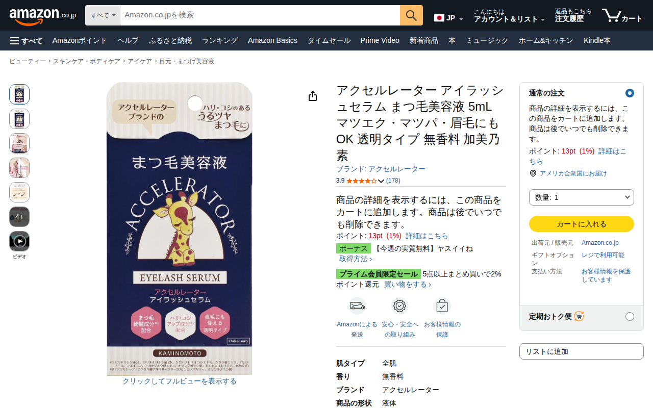 Amazon.co.jp: アクセルレーター アイラッシュセラム まつ毛美容液 5mL マツエク・マツパ・眉毛にもOK 透明タイプ 無香料 加美乃素 : ビューティー