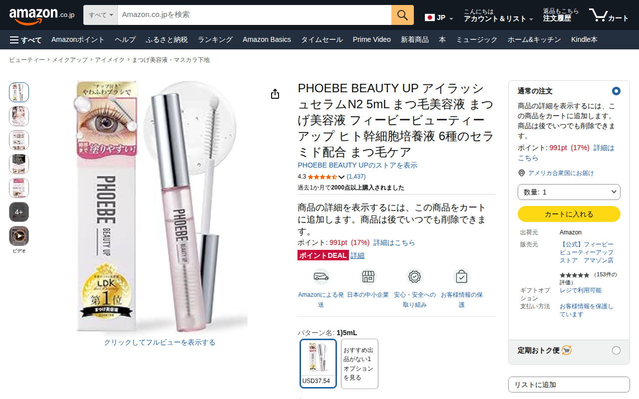 PHOEBE BEAUTY UP アイラッシュセラムN2 まつ毛美容液