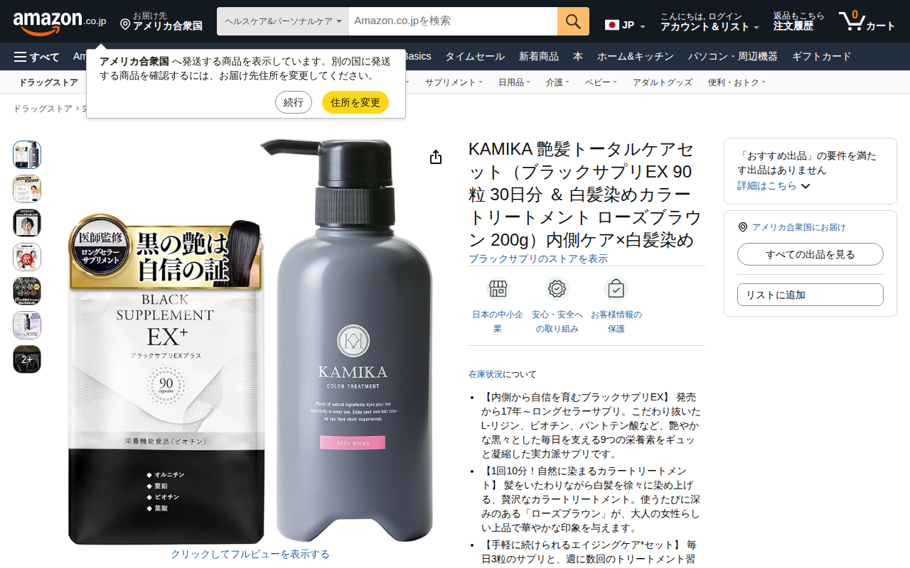 Amazon | KAMIKA 艶髪トータルケアセット(ブラックサプリEX 90粒 30日分 & 白髪染めカラートリートメント ローズブラウン 200g)内側ケア×白髪染め | ブラックサプリ | 亜鉛