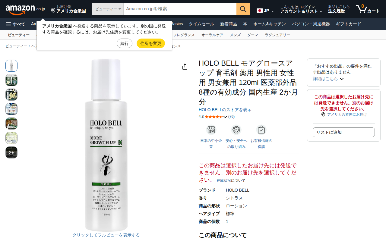 HOLO BELL モアグロースアップ 育毛剤 男女兼用 120ml 医薬部外品