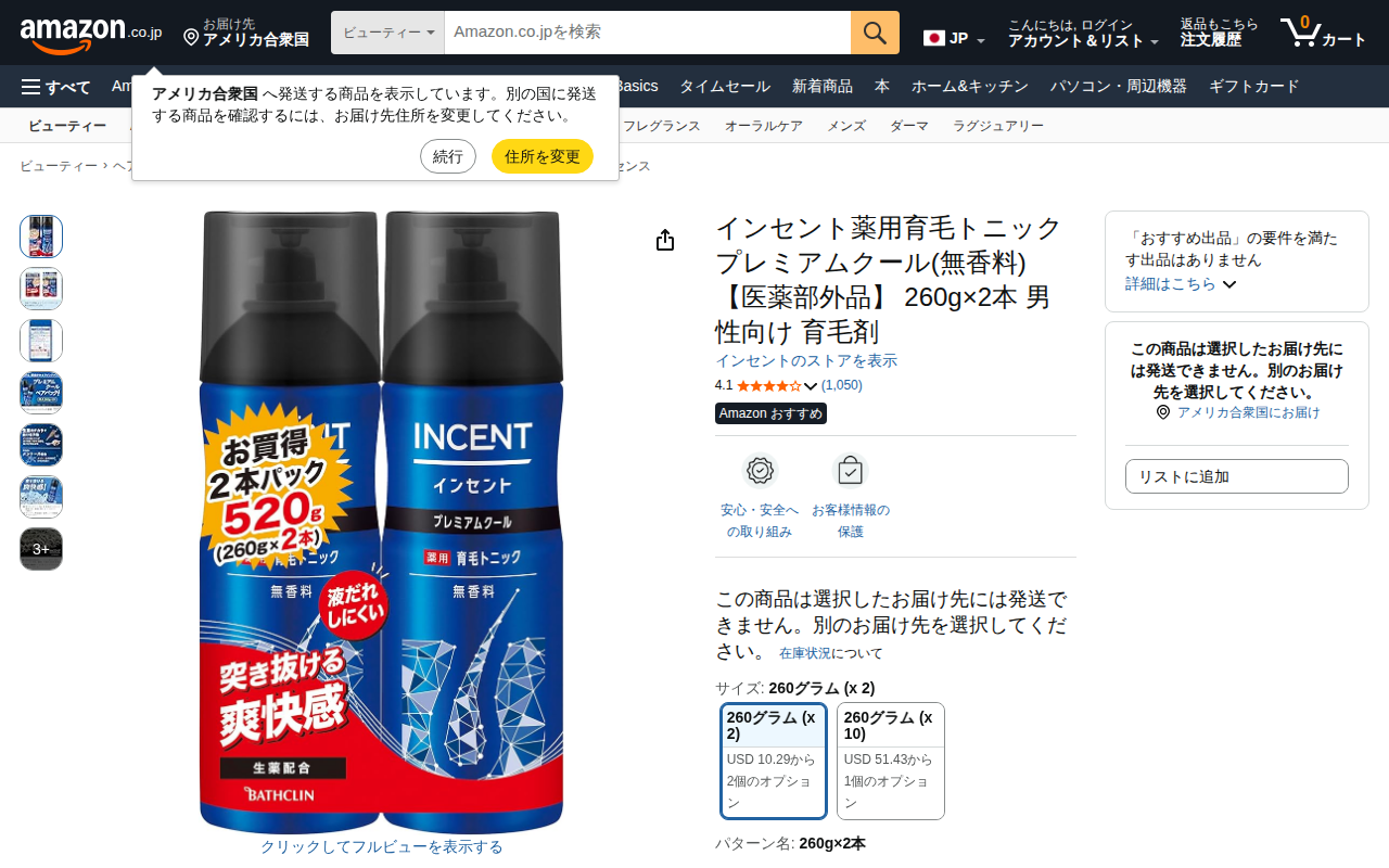 This page presents the Incent Medicinal Hair Growth Tonic Premium Cool (unscented), a men's hair loss preventi...