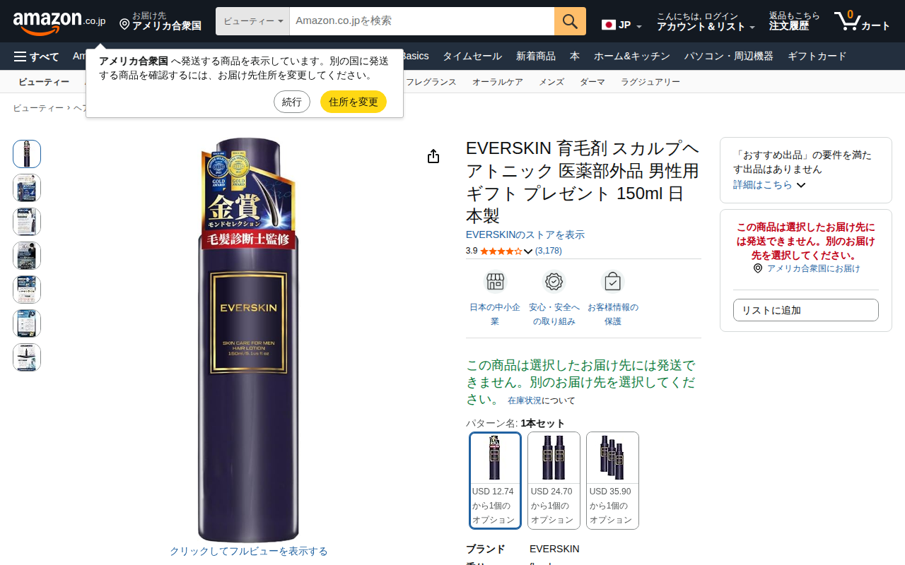 EVERSKIN 育毛剤 スカルプヘアトニック 医薬部外品 150ml