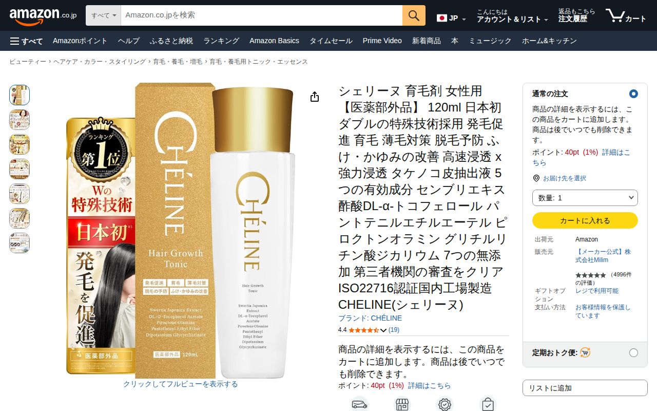 Amazon | シェリーヌ 育毛剤 女性用 【医薬部外品】 120ml 日本初 ダブルの特殊技術採用 発毛促進 育毛 薄毛対策 脱毛予防 ふけ・かゆみの改善 高速浸透 x 強力浸透 タケノコ皮抽出液 5つの有効成分 センブリエキス 酢酸DL-α-トコフェロール パントテニルエチルエーテル ピロクトンオラミン グリチルリチン酸ジカリウム 7つの無添加 第三者機関の審査をクリア ISO22716認証国内工場製造 CHELINE(シェリーヌ) | CHÉLINE | 育毛・養毛用トニック・エッセンス 通販