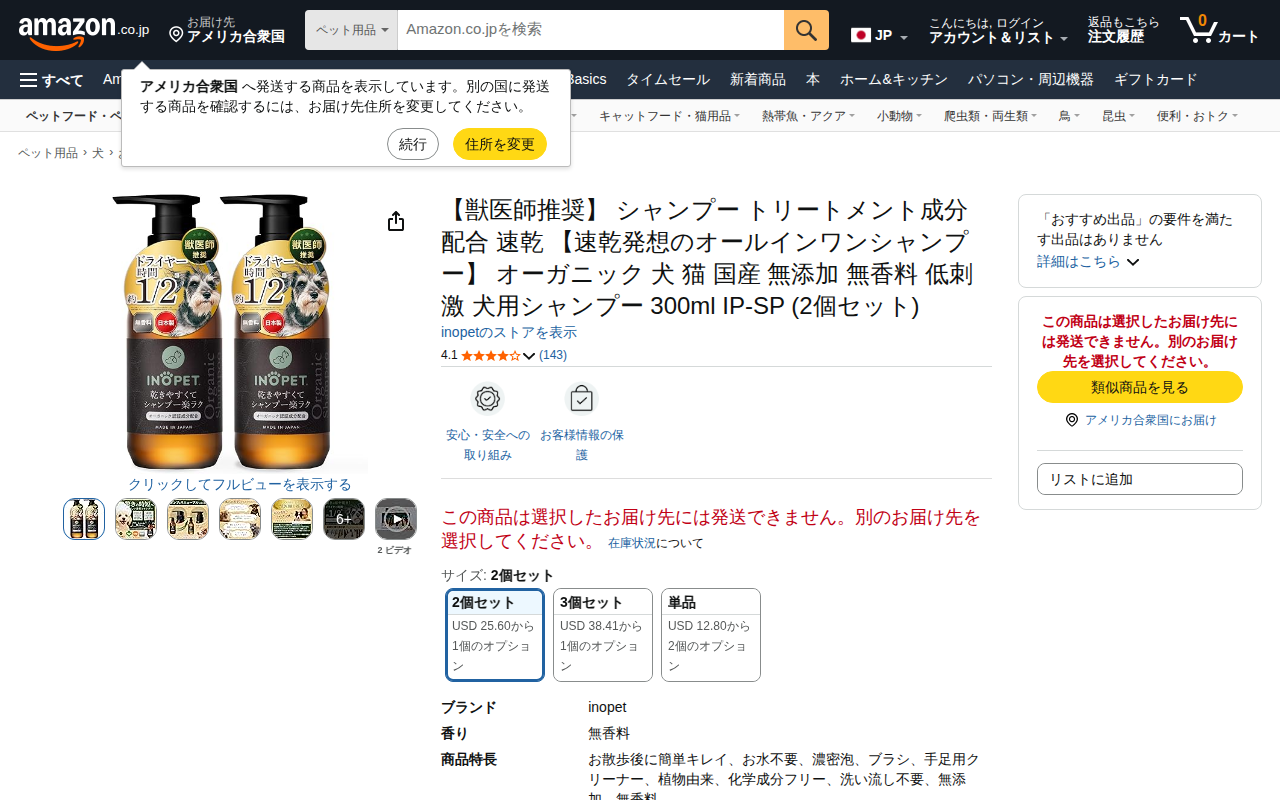 Amazon | INOPET 【獣医師推奨】 シャンプー トリートメント成分配合 速乾 【速乾発想のオールインワンシャンプー】 オーガニック 犬 猫 国産 無添加 無香料 低刺激 犬用シャンプー 300ml IP-SP (2個セット) | inopet | シャンプー 通販