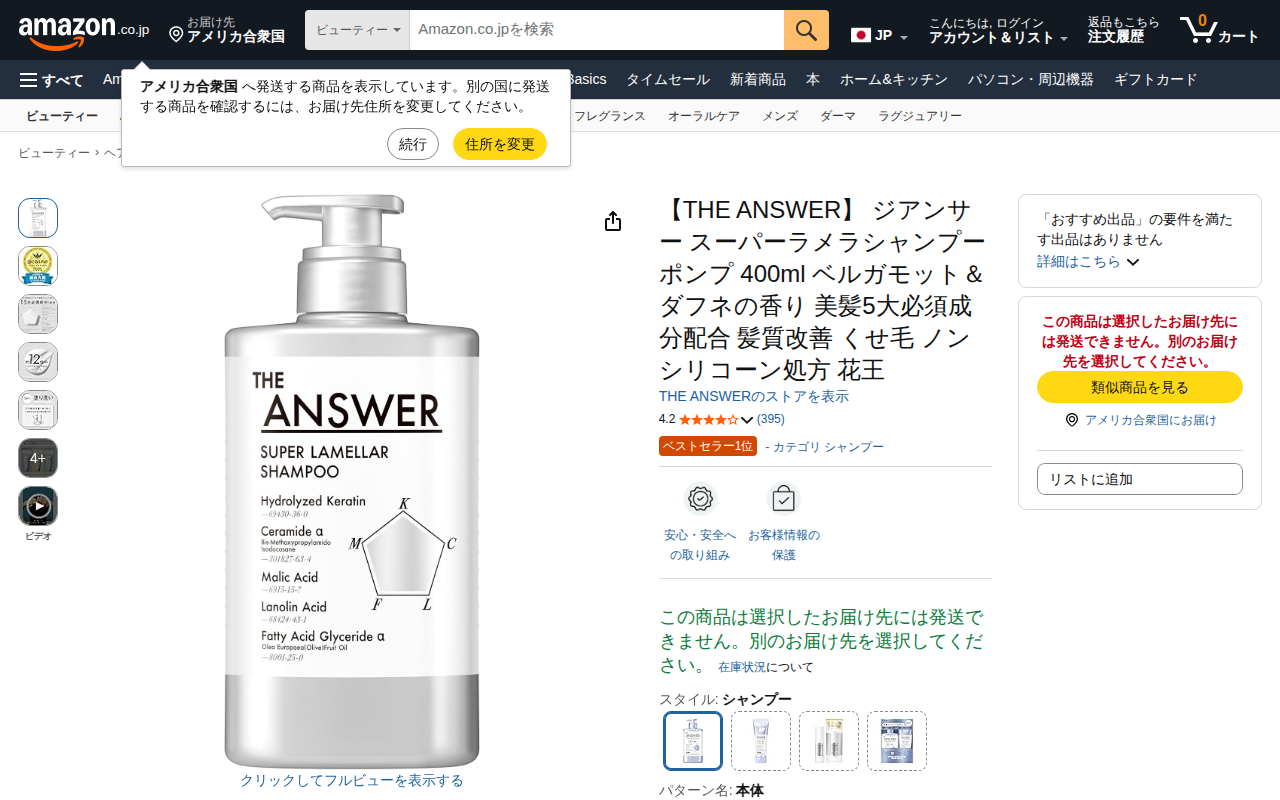 Amazon.co.jp: 【THE ANSWER】 ジアンサー スーパーラメラシャンプー ポンプ 400ml ベルガモット&ダフネの香り 美髪5大必須成分配合 髪質改善 くせ毛 ノンシリコーン処方 花王 : 食品・飲料・お酒