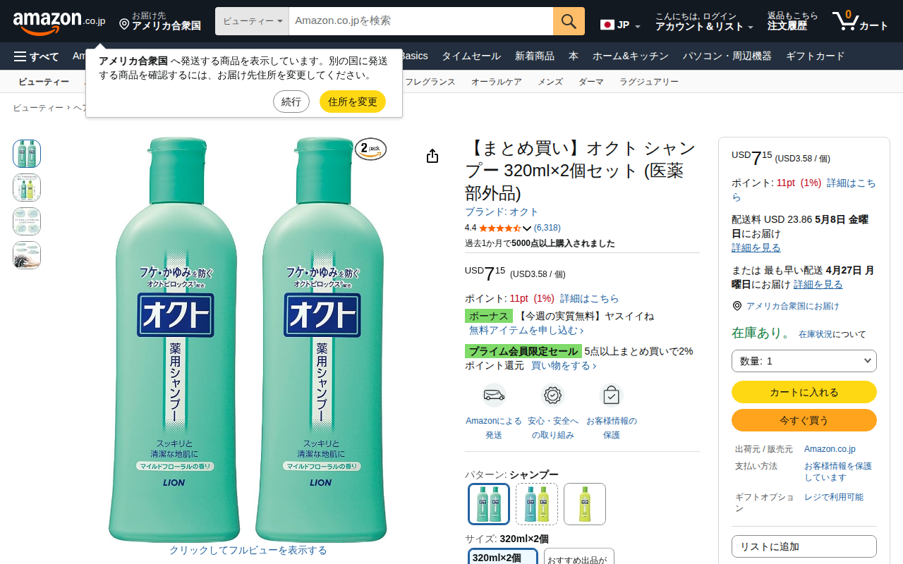 This page features Octo Shampoo Mild Floral, a 320ml×2 pack product. It is a quasi-drug shampoo brand by Octo ...