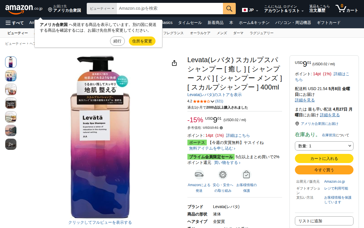 This page presents the Levata Scalp Spa Shampoo 400ml available on Amazon. It is a liquid shampoo formulated f...